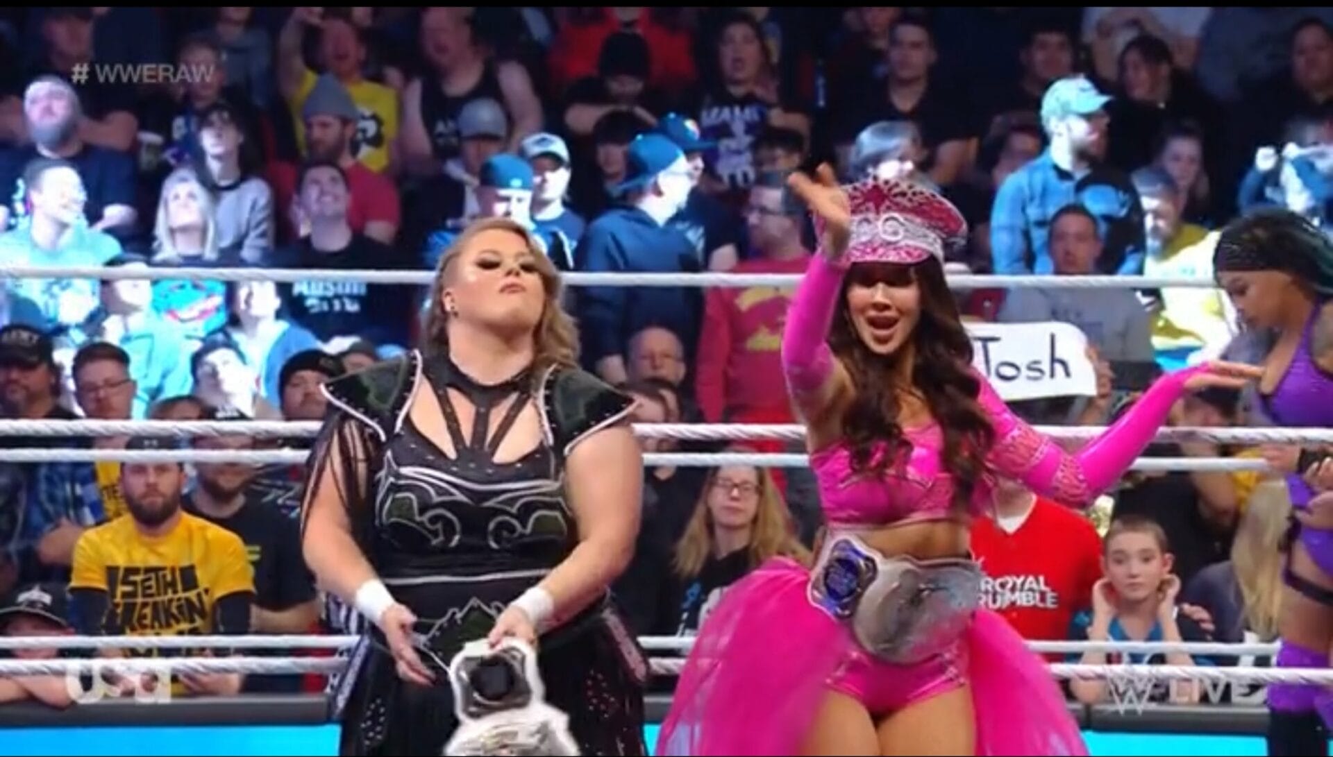 Nia Jax llego al ring, pero Becky llegó y quiso intercambiar palabras con ella. Nia anunció que estará presente en Royal Rumble 2024 y le dijo a Becky que ella es quien lleva el dinero a la compañía, pero luego la minimizó. Becky le hizo saber a Nia que le tiene miedo y que, si bien admitió que el puñetazo le ayudó en su carrera, eso ya quedó en el pasado y propuso enfrentarla.