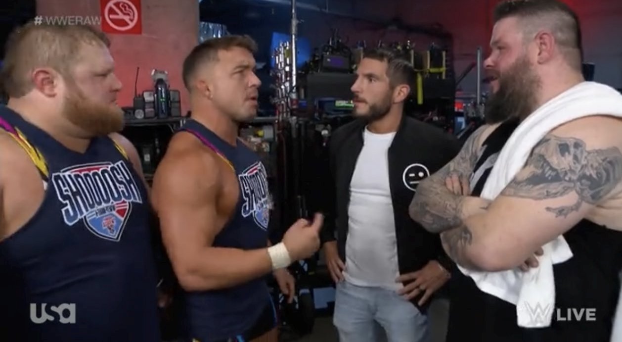Jhonny Gargano fue encarado por Alpha Academy y Chad Gable le dijo que cometió un error al meterse con Austin Theory. Kevin Owens llegó para apoyar a Gargano y se concretó un combate entre ambos equipos para la próxima semana.