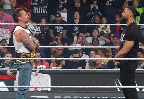 Punk le cuestionó diciéndole que lo que hizo Roman fue tomar a la compañía como rehén, y luego se refirió a lo que dijo en el programa de Pat McAfee y que nadie era capaz de llenar sus zapatos. Luego, le recordó que él siguió sus pasos al valerse de Paul Heyman para mantener un largo reinado.