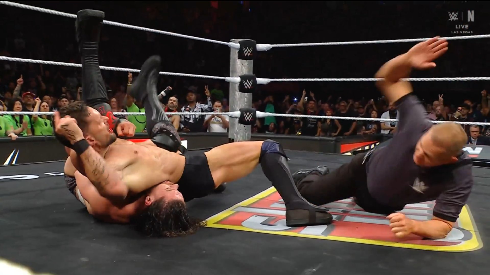 CM Punk llegó al ring sin música al inicio, y luego se dirigió al público para hablar sobre las pérdidas que ha sufrido, empezando por su perro Larry.