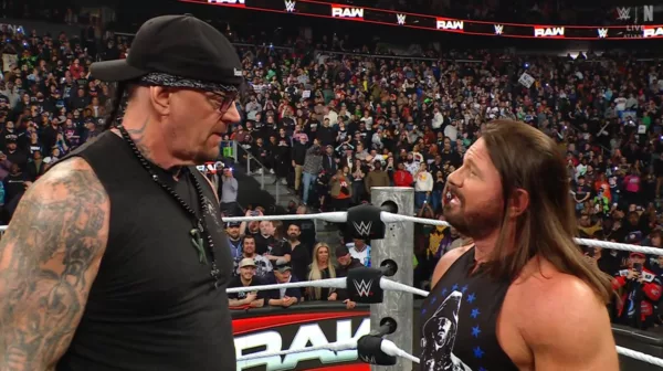 Se apagaron las luces, sonó la campana y The Undertaker apareció con su motocicleta para preguntarle si iba a dejar sus cosas y retirarse, recordándole que ambos tenían aún asuntos pendientes. Y tras recordarle un viejo dicho, fue el encargado de anunciarle que irá al Salón de la Fama WWE este mismo año.