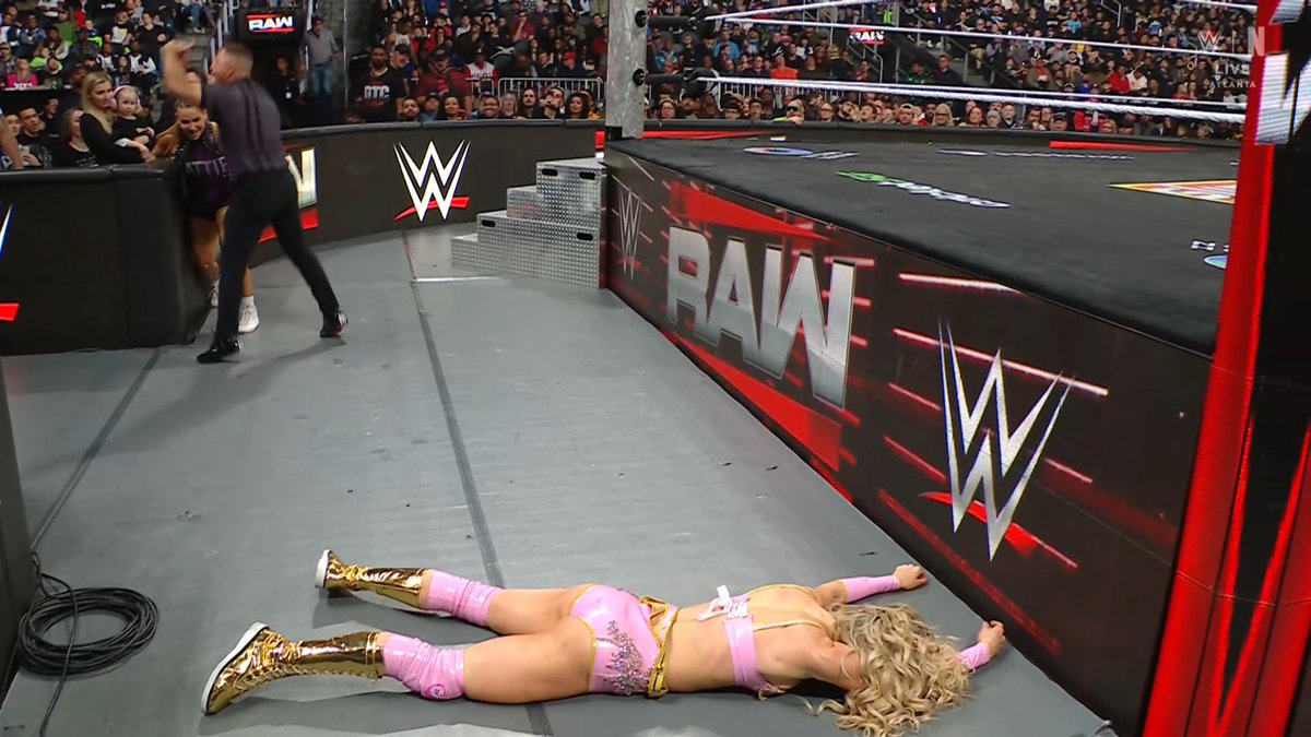 Luego, miró a Jade, y antes de que dijera algo, sorprendió a Stephanie con un microfonazo y decidió atacarla y rematarla con un Oblivion, implícitamente desafiándola para WrestleMania.