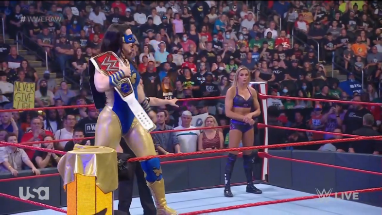 Charlotte Flair interrumpió y recibió el abucheo del público. Luego, le dijo a Nikki que ella es «una desgracia como campeona». Dijo que ella se apareció para darle «un poder estelar» al programa y, tras repasar lo ocurrido hace una semana, le dijo a Nikki que «le robó su título».
