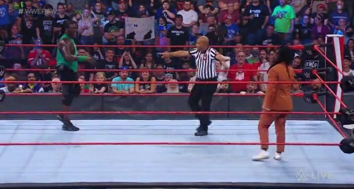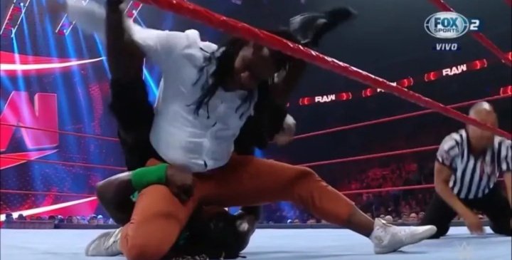 ► Cedric Alexander apareció y les reclamó a ambos por haberlo expulsado del Hurt Business, y le dijo que el motivo fue que le tenía miedo. Shelton Benjamin también apareció y le planteó un reto a Lashley. MVP quiso parar esto, pero Lashley pidió enfrentarse a ambos al mismo tiempo y aquí tuvimos un combate.