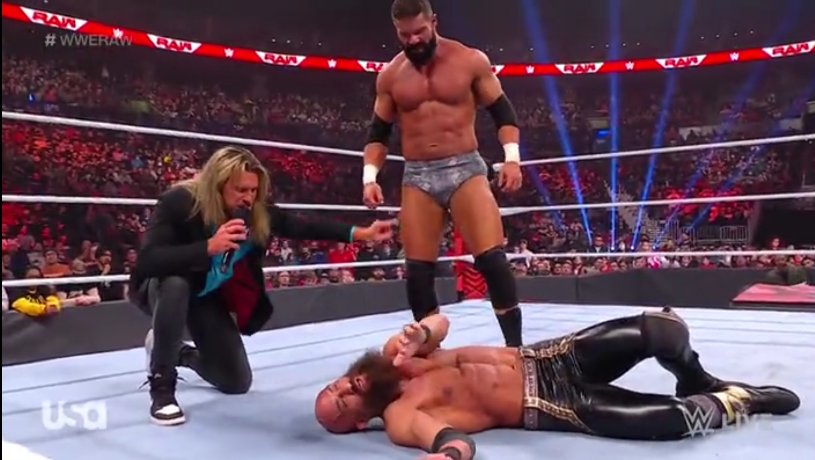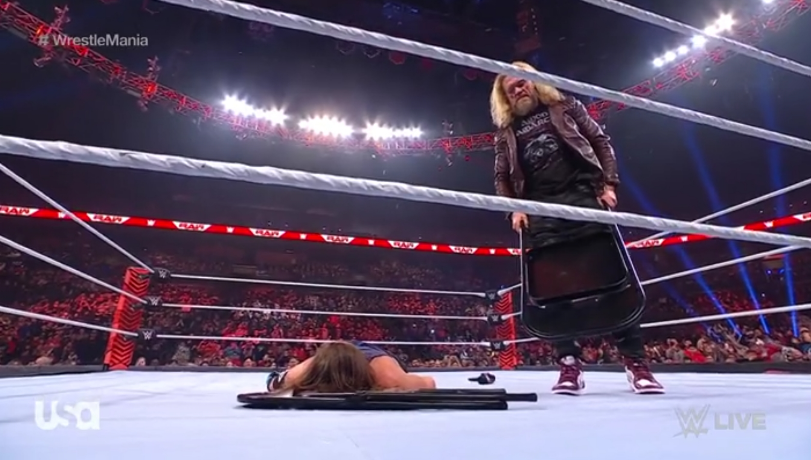 Edge parecía que abandonaba el lugar, pero prefirió traer un par de sillas y preparaba el conchairto. Tras dudar un poco, finalmente lo conect no una, sino dos veces. El viejo Edge está de vuelta, y con un AJ Styles inconsciente en la lona, el programa salió del aire.