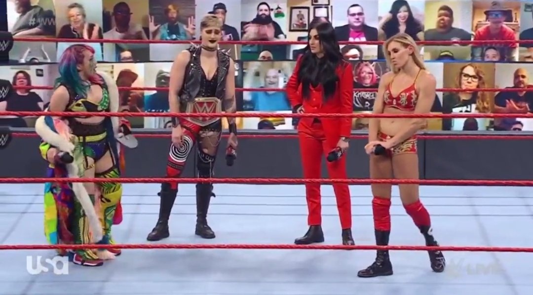 Sonya Deville aparece y le da el micrófono a Charlotte Flair, quien le dice a la oficial de WWE que una vez más fue dejada de lado en el combate en WrestleMania Backlash entre Asuka y Rhea Ripley. Charlotte le recuerda que ella acabó con la racha invicta de Asuka y que el año pasado derrotó a Rhea Ripley en WrestleMania 36. Luego, la desafía a que la ponga en ese combate.