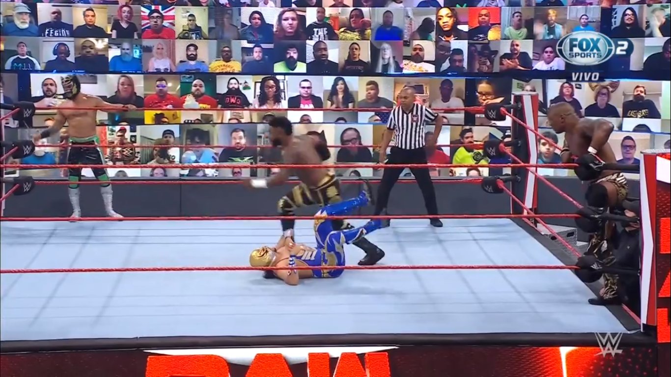 Shelton Benjamin ingresa y logra azotar a Metalik varias veces contra la lona. Luego, los ex Campeones aislan a Metalik contra su esquina, hasta que este bloquea un ataque de Alexander y llega a su esquina. Lince Dorado y Shelton Benjamin ingresan y este último lo neutraliza con un gran lazo y logra otra cuenta de dos