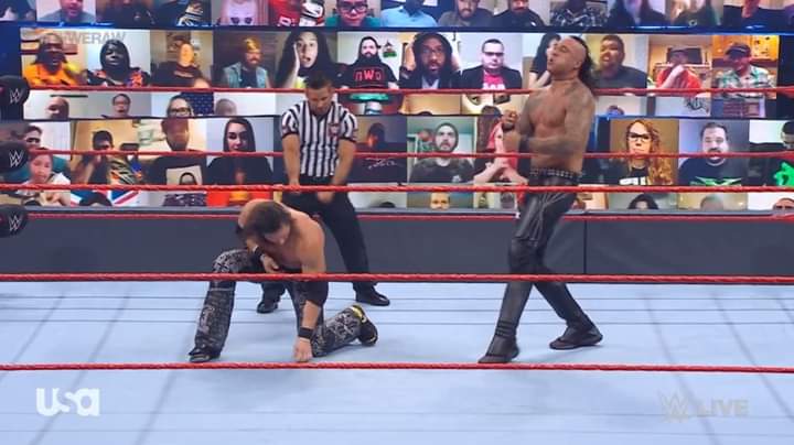 Al iniciar el programa, vemos que minutos antes Adam Pearce, MVP, Drew McIntyre y Braun Strowman discutían respecto al enfrentamiento que se dará esta noche, el cual será por sorteo. La moneda decide que Braun Strowman será quien enfrente a Bobby Lashley esta noche.
