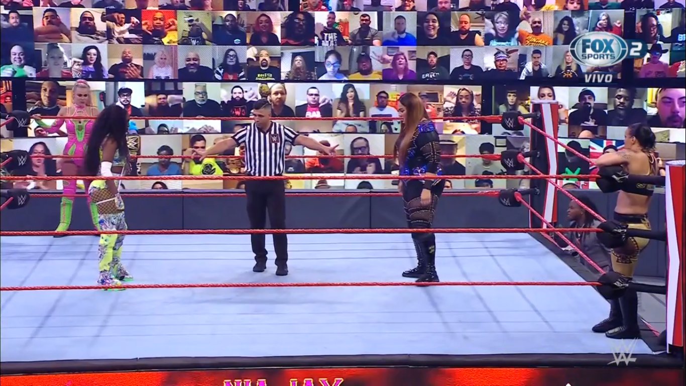 Lana sigue en control y Naomi vuelve a ingresar combinándose con su compañera para dominar a Shayna, mientras sacan a Nia Jax fuera del ring. Tras conectar un double Face Buster, Nia Jax y Reginald interrumpen e impiden que el conteo prospere.