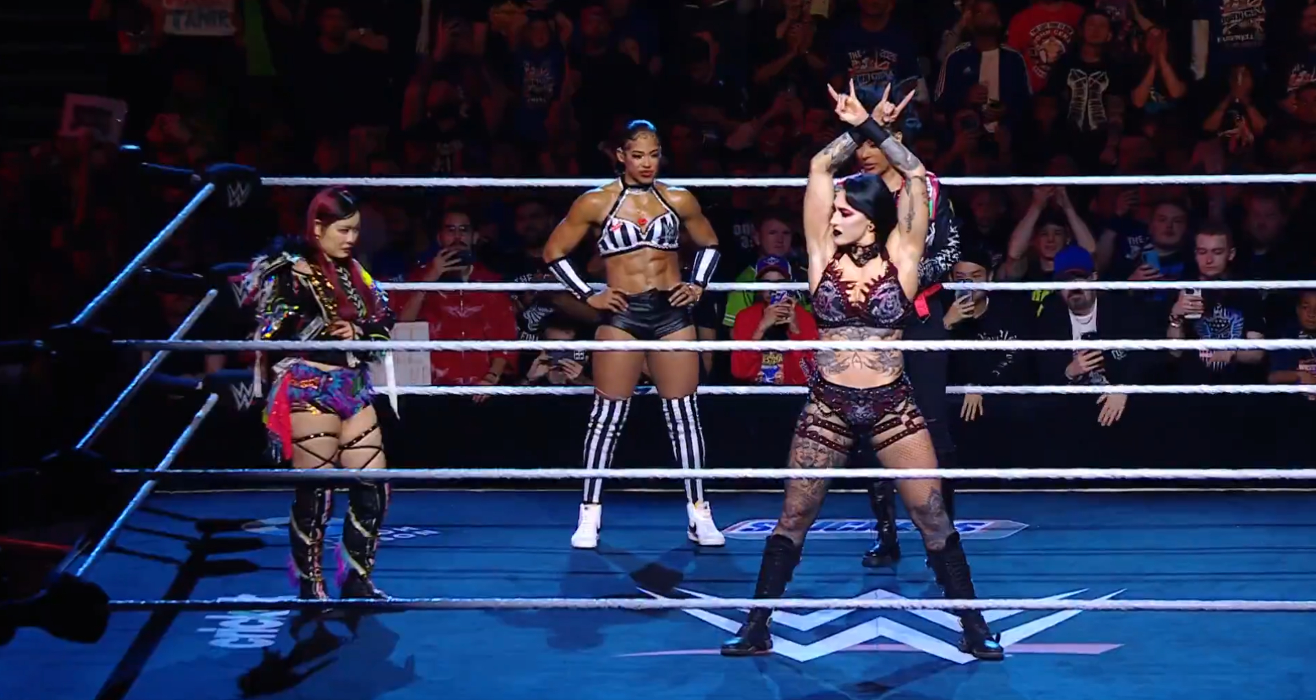 ► Rhea se puso de pie nuevamente y conectó un cabezazo sobre Bianca, seguido de un Riptide sobre ella… y otro sobre Iyo. Rhea quedó en pie mientras el show llegaba a su fin. Y así acabó la función de esta noche.