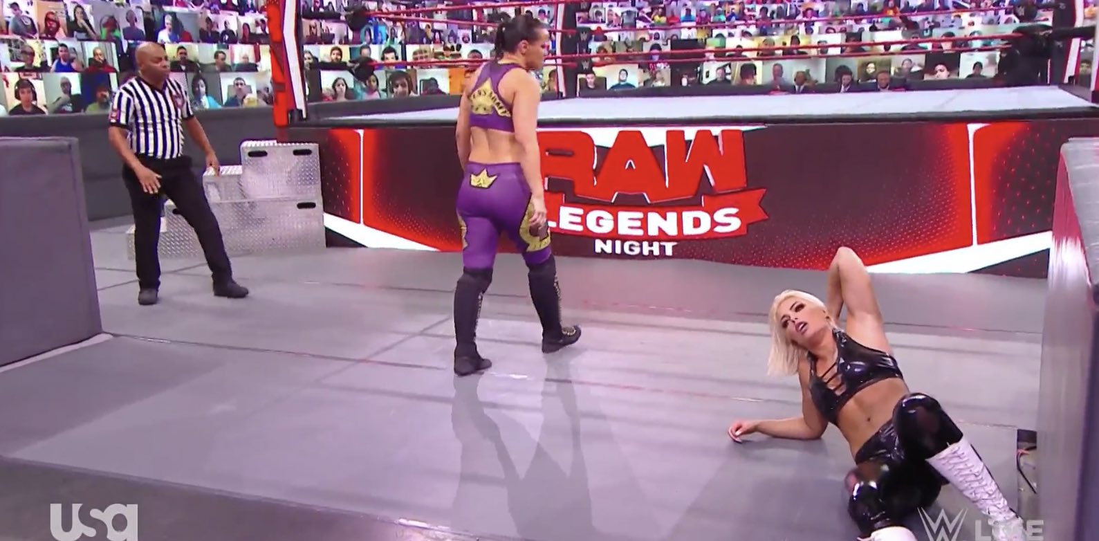 Shayna Baszler ataca a Mandy Rose antes de que esta ingrese al ring, y tras estrellarla contra la barrera de protección, ingresa al ring. Dana Brooke aparece y le reclama a Baszler y decide tomar el lugar de su compañera, a pesar de no tener su atuendo.