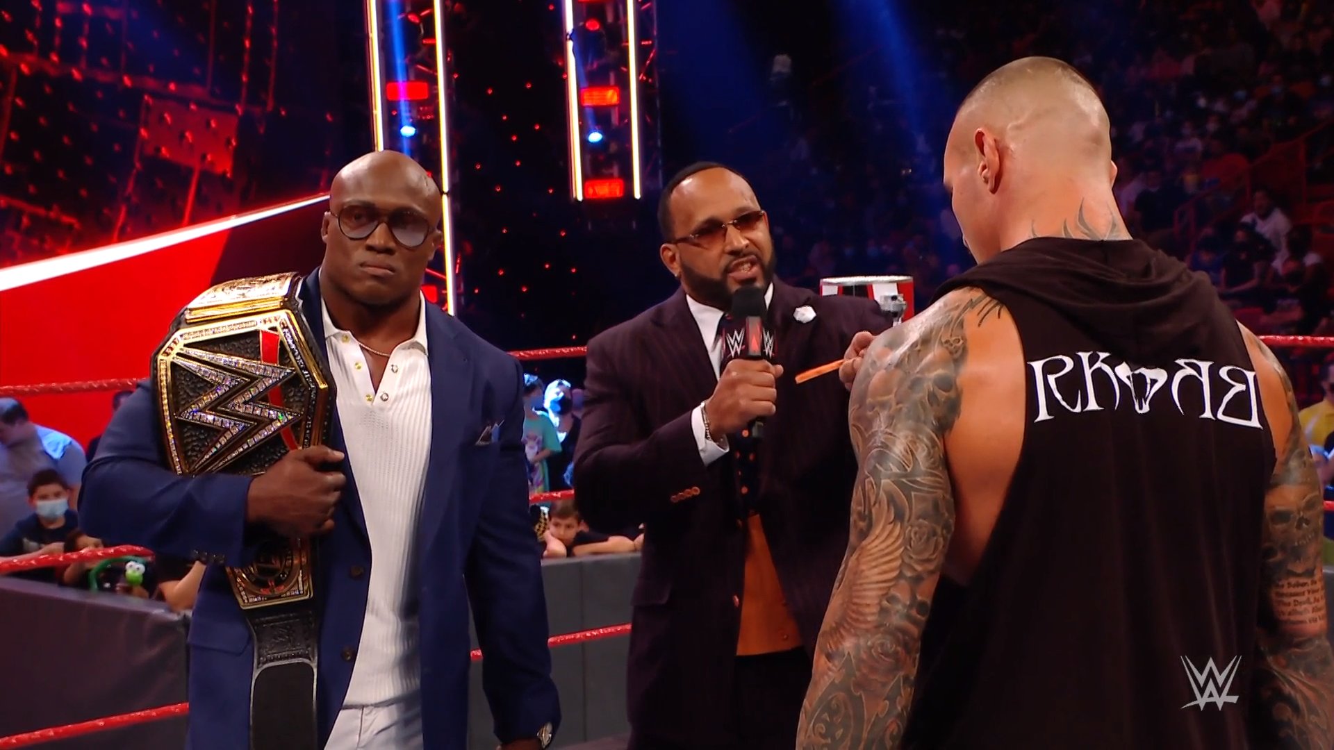 Los Campeones de Parejas Raw, RK-Bro, hicieron su aparición y Orton tomó el micrófono para dedicarle unas palabras para Bobby Lashley diciéndole que es un hijo de per**.