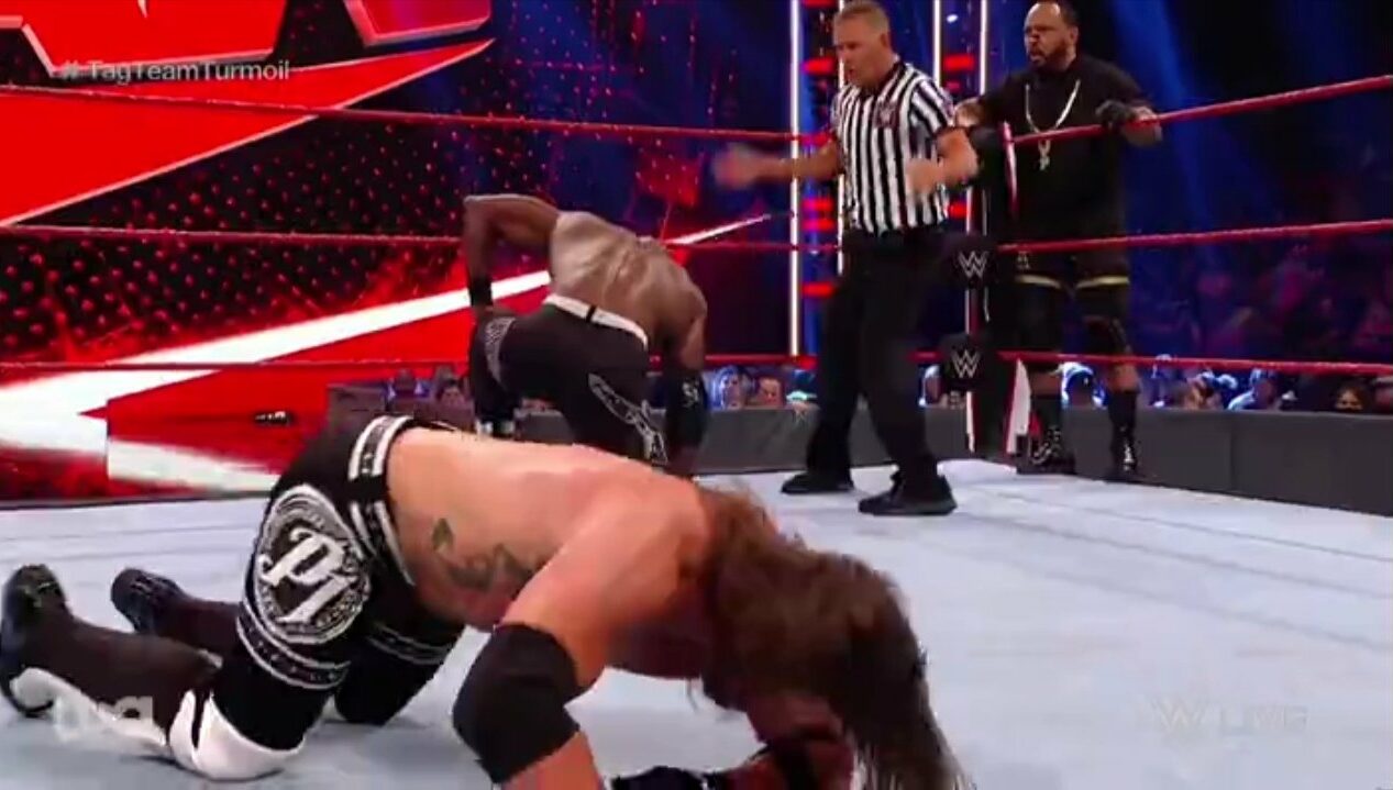 Orton agregó que estarán presentes para ver quiénes serán los ganadores del combate de siete equipos para patearles el trasero. Riddle también se refirió a dichos equipos, pero de una manera más graciosa a tal punto que le sacara una sonrisa a Orton. Sin embargo, Bobby Lashley y MVP aparecieron.