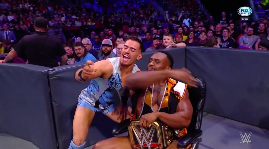 Big E arribó al ring para presenciar el combate, pero Austin Theory también llegó, pero para tomarse fotos, hasta que Big E le arrojó el celular.