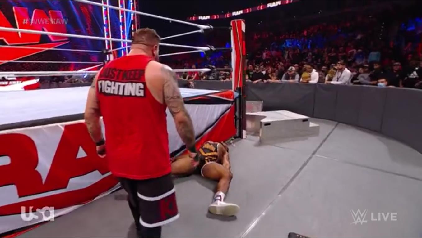 Desde el pasado lunes, WWE anunció para este episodio el mano a mano entre Seth Rollins y Kevin Owens. Recordemos que en el Raw anterior, Big E y Owens se enfrentaron, pero Rollins llegó para atacar al Campeón WWE, quien a pesar de ello pudo ganar. Aunque Owens se disculpó y dijo que nada tenía que ver con la intromisión de Rollins, Big E procedió a aplicarle el Big Ending. Ahora Owens buscará desquitarse de Rollins.