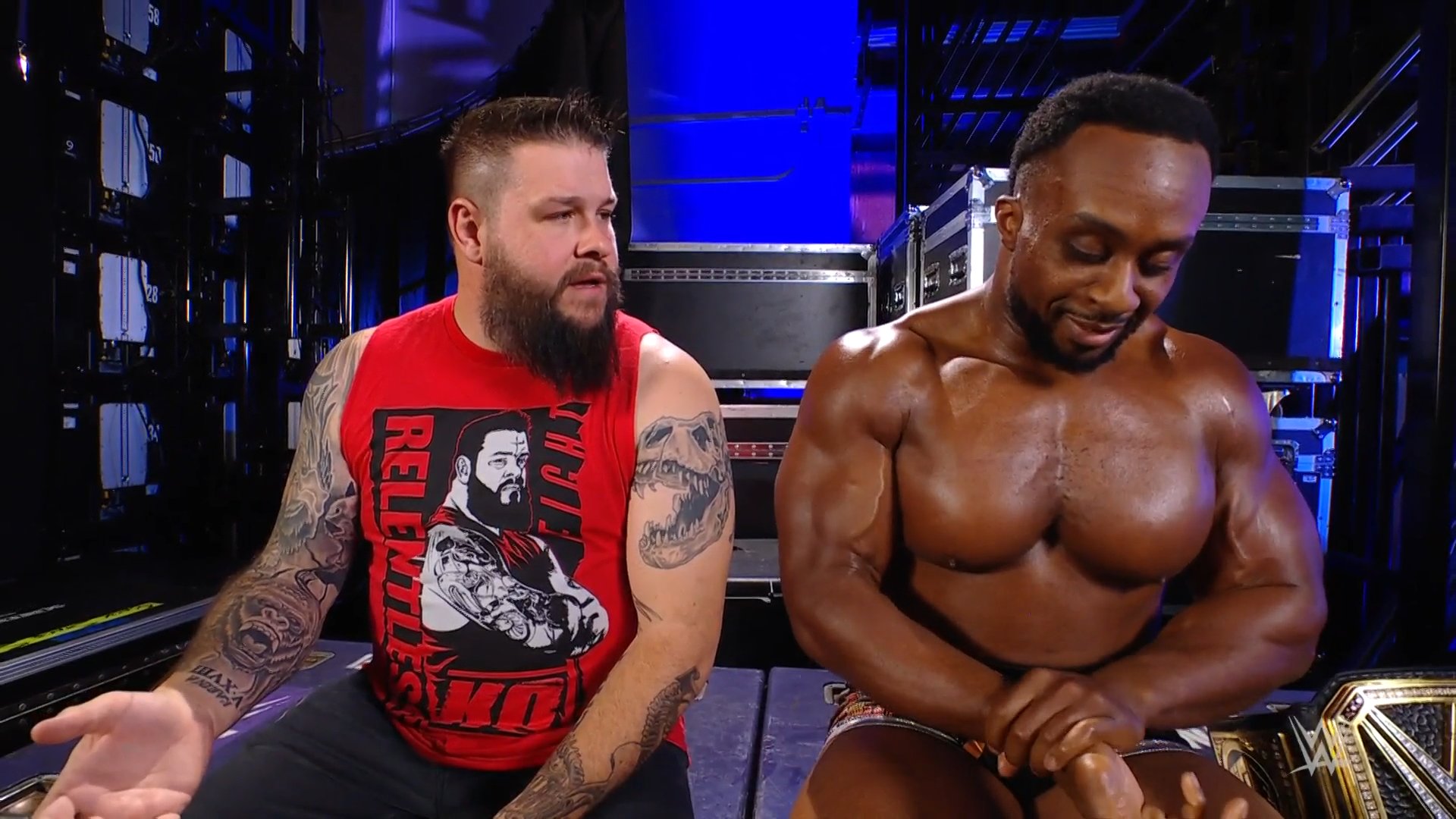 Kevin Owens empezó explicándole a Big E que ha cambiado y ya no es el traidor que solía ser, y por eso quiso pedir perdón. Big E no estuvo muy convencido y se fue.