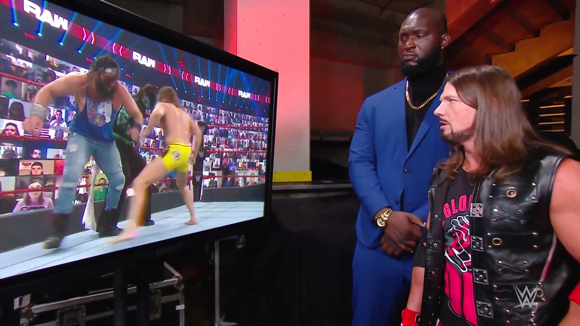 Styles dice que tiene un Plan B: le planteó a Adam Pearce una lucha entre Sheamus y Braun Strowman contra Keith Lee y Riddle, con AJ Styles como réferi especial, con la finalidad de que el equipo gane respeto. Los miembros del Team Raw discuten y vamos a comerciales.