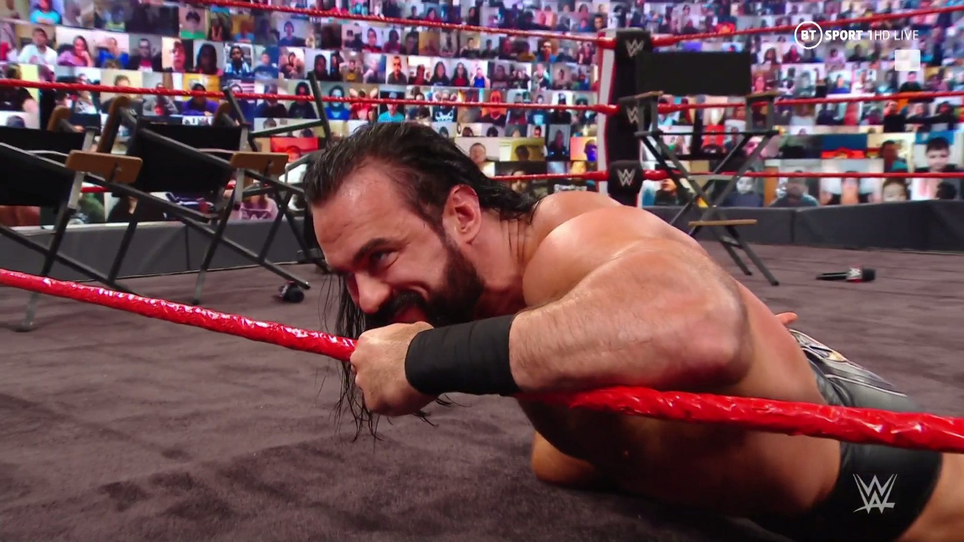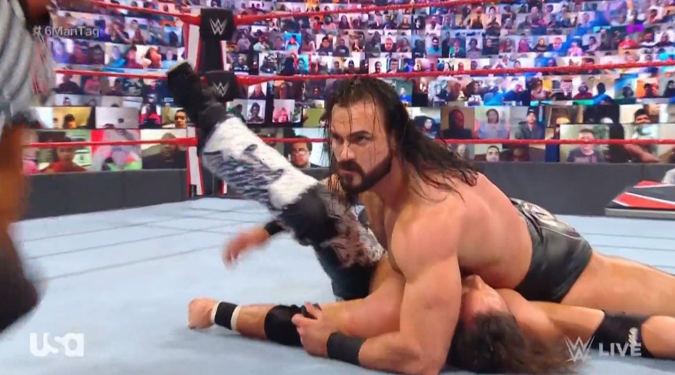 Tras bastidores, Sheamus se queja ante Drew McIntyre de lo ocurrido hace unos minutos. McIntyre le dice que le hubiera ido mejor si no le hubiera aplicado el Brogue Kick a sus compañeros de equipo,
