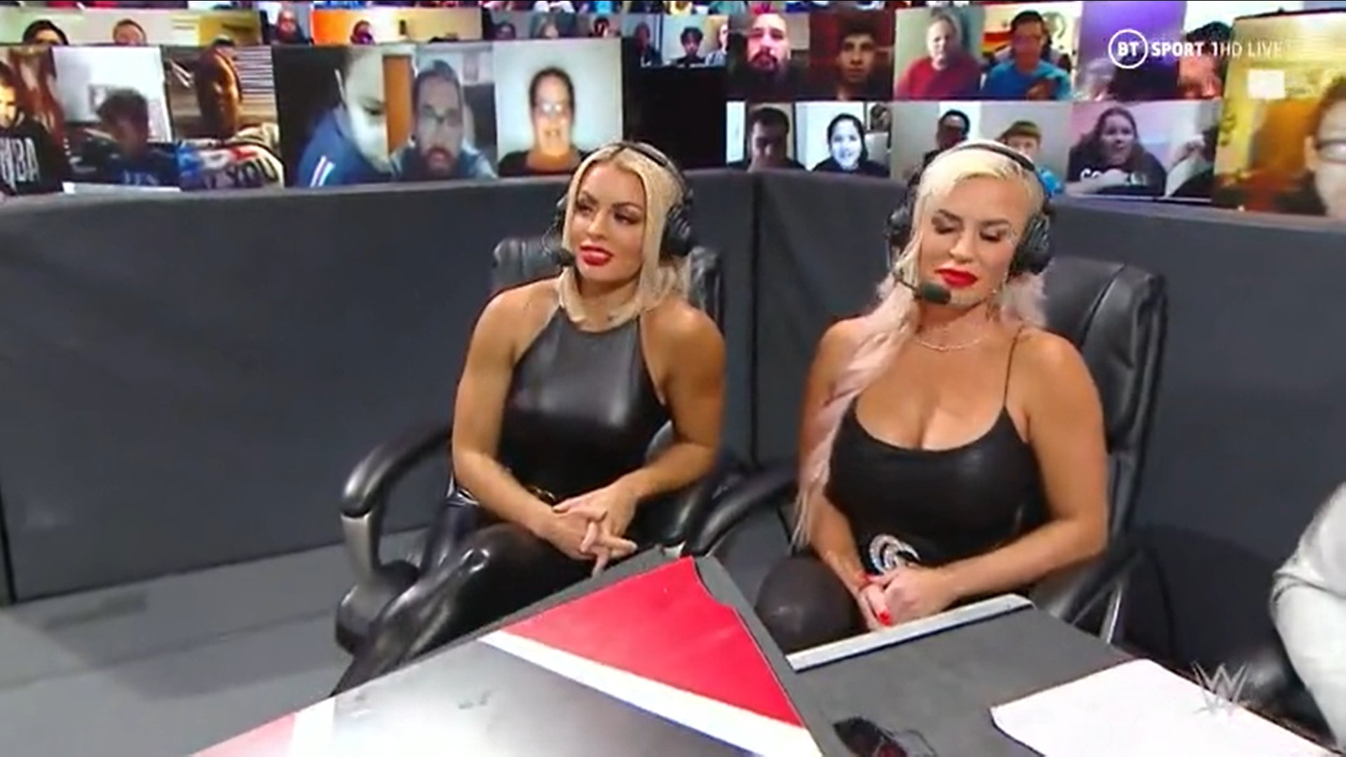 Dana Brooke y Mandy Rose están en la mesa de comentarios.