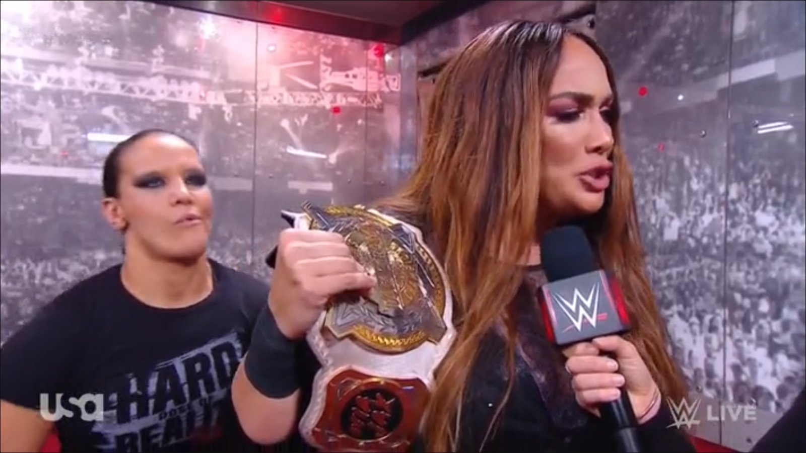 Nia Jax dice que le demostrará a Asuka que ella es quien manda en la división femenil, y que nadie -excepto su compañera- pueden abrir la boca. Dice que buscará ser la mujer más dominante y derrotará a Asuka para convertirse en la Campeona Raw.