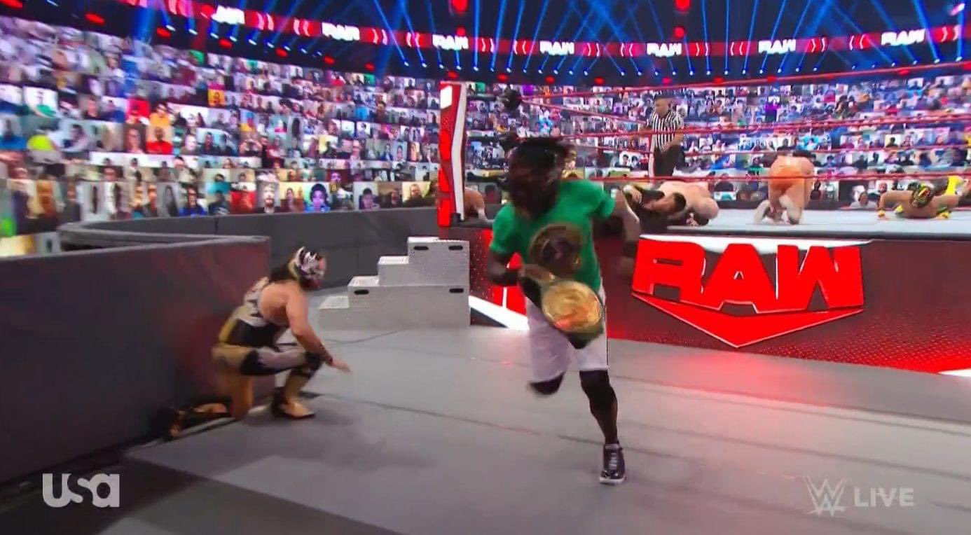 R-Truth ataca a Tucker y Gulak a Truth y ahora todos se atacan contra todos. Bueno, hasta que Gran Metalik se lanza en plancha sobre Tucker y consigue una cuenta de tres. Nuevo campeón.
