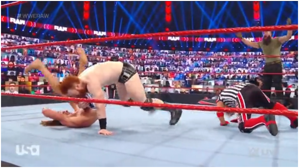 Sheamus ataca a Styles accidentamente, y logra cubrir a Riddle, pero no hay conteo.
