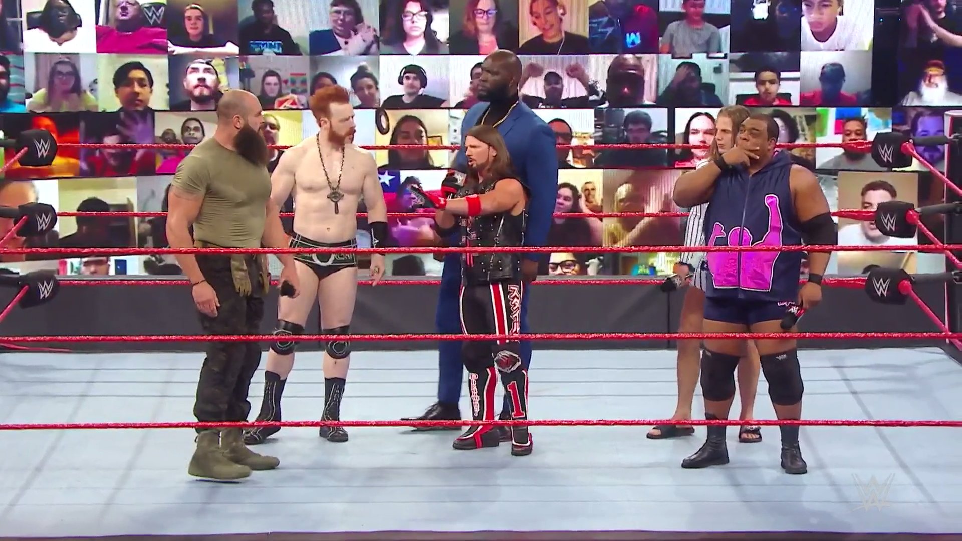Sheamus dice que AJ no es su capitán, y Strowmann aparece y dice lo mismo.