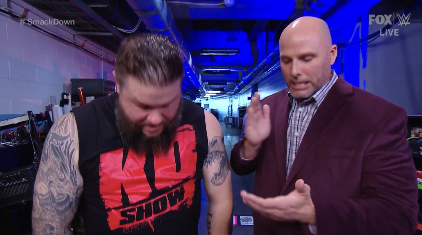 Kevin Owens aparece y Roman Reigns interrumpe y le dice que no tiene nada que hacer aquí. Le dice que se largue, porque su presencia le averguenza el programa, y que todo tiene que ver ahora con su primo Jey.