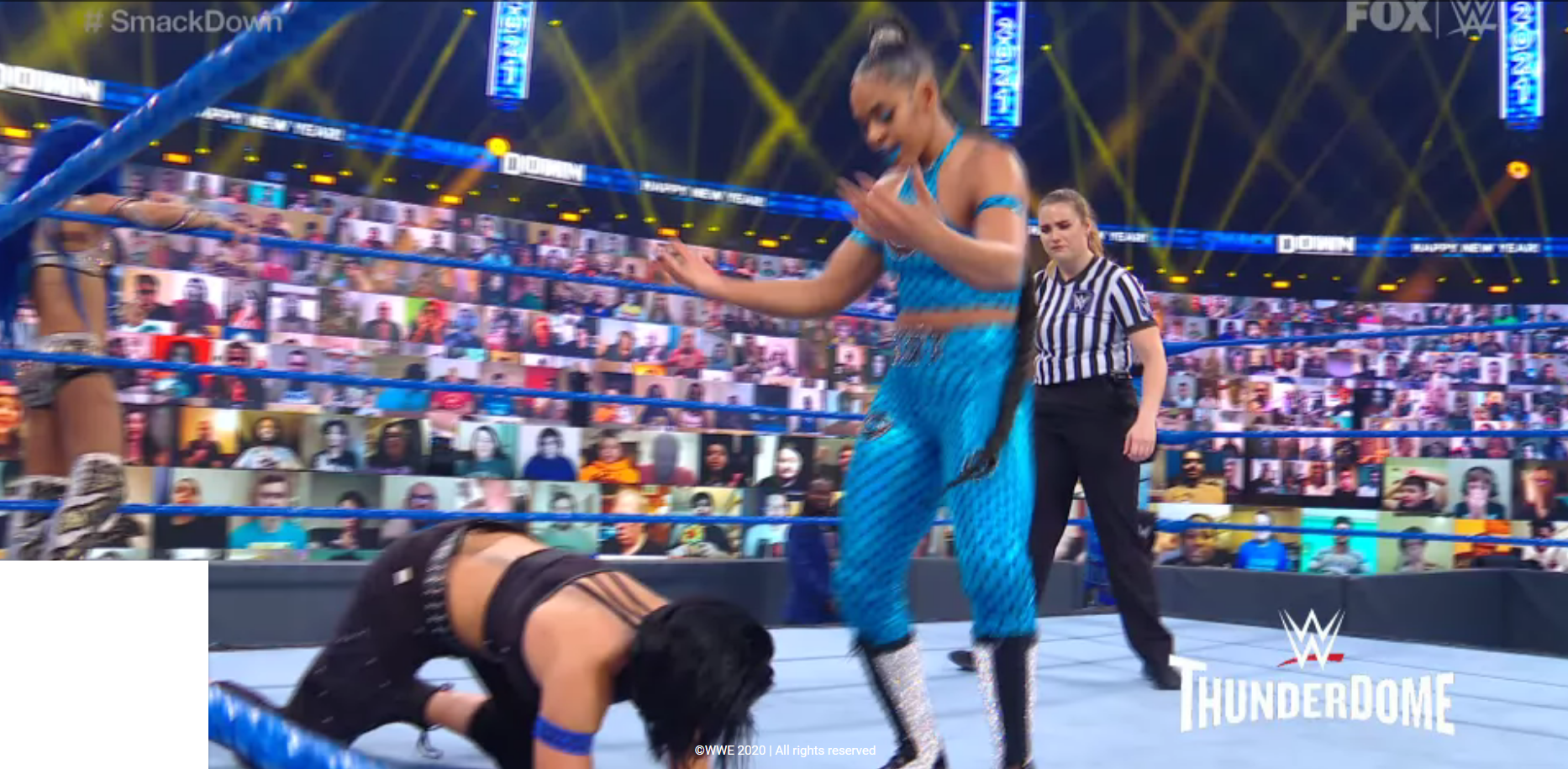 WWE SMACKDOWN 1 DE ENERO 2021 .— Inicia un año nuevo, y mientras el mundo entero espera que empiecen a apaciguarse los momentos de angustia que nos dejó el 2020, en WWE la lucha sigue. La empresa McMahon está preparándose para su temporada WrestleMania. Y la próxima parada es Royal Rumble. ¿Quiénes llegarán con los títulos a ese evento y quiénes saldrán del mismo como retadores? La acción de la marca azul de WWE se emite desde el ThunderDome, instalado en el Tropicana Field, de St. Petesburg, Florida.