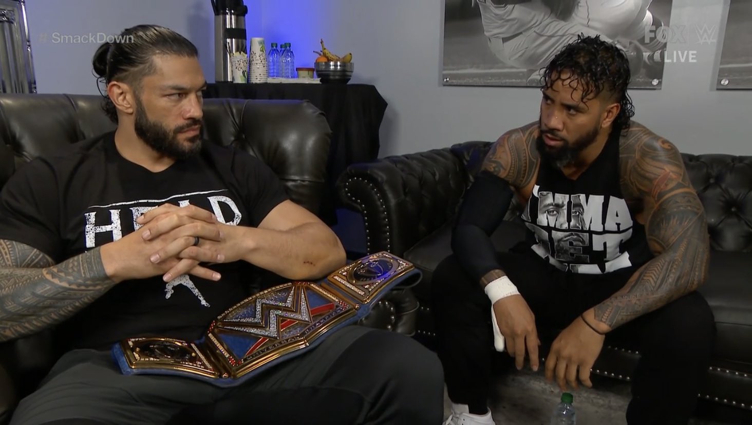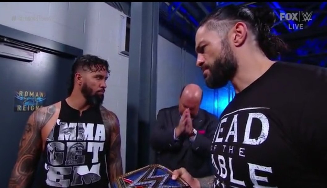 En los camerinos, Paul Heyman le dice que fue Adam Pearce quien programó el encuentro. Reigns está molesto pero le dice a Jey Uso que demuestre de qué está hecho.