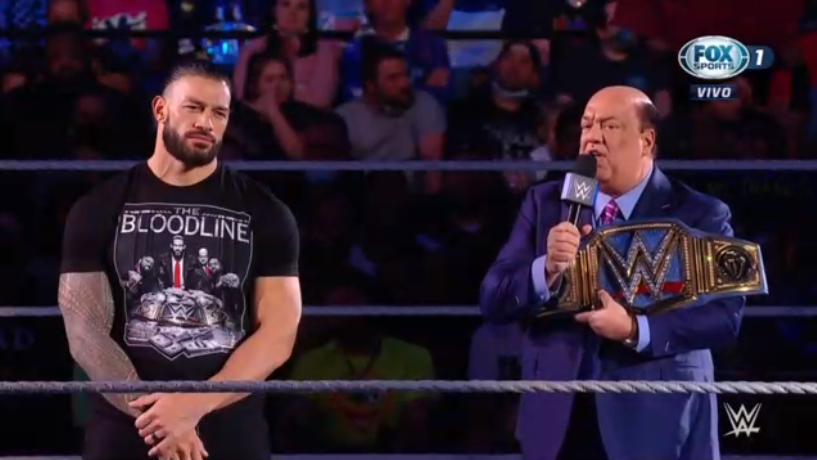Heyman dijo que Reigns exorcisó al Demonio Finn Bálor y ahora apunta sus miradas a Crown Jewel, y dijo que también «exorcisará» al amo de los Suplexes -refiriéndose a Brock Lesnar- y concluyó diciendo que saldrá del PPV como Campeón.