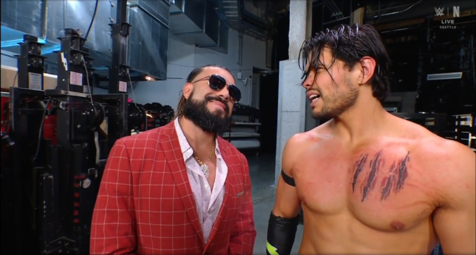 ► Justo después, aparecieron Alex Shelley y Chris Sabin. Chris preguntó si escucharon algo sobre una conspiración. Sabin les recordó que ellos recibirán la oportunidad por el campeonato de parejas la próxima semana ante The Street Profits. Alex Shelley les dijo que trabajaron duro para ganar ese campeonato, y que Gargano y Ciampa se los arrebataron injustamente. “Esto es karma”, dijo, mirándolos fijamente.