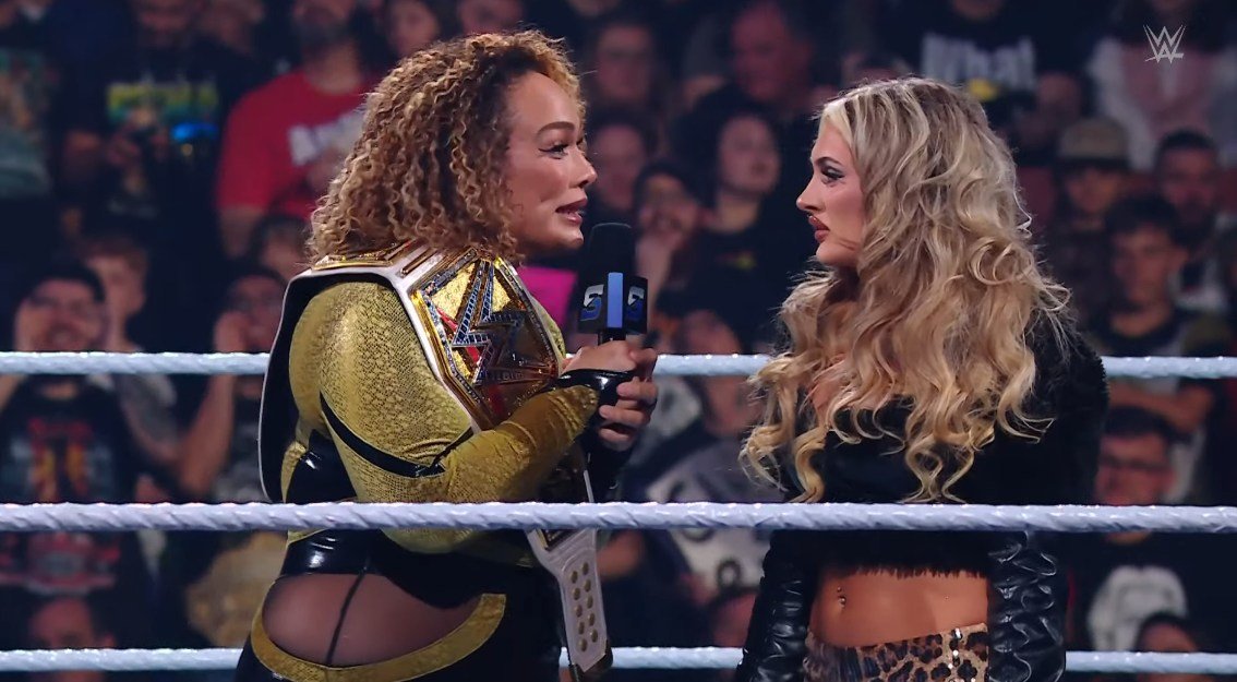 ► Muy enojada, la Campeona WWE, Nia Jax, le ordenó a Tiffany Stratton con una llave al cuello que tenía que canjear su maletín ante la Campeona Mundial WWE, Liv Morgan.