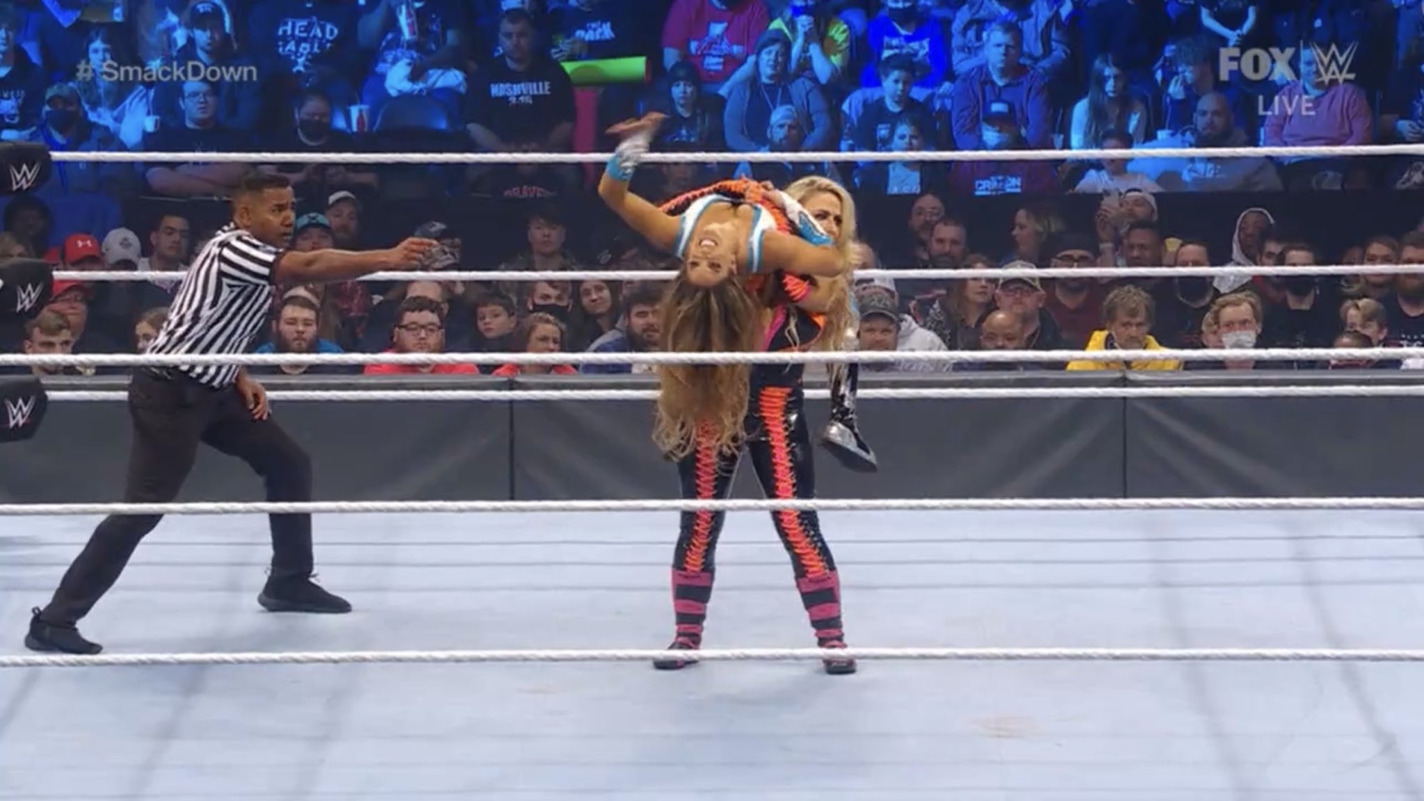 WWE SMACKDOWN 21 DE ENERO 2022 .— La semana pasada, Naomi siguió siendo objeto de las maquinaciones de Sonya Deville, quien se niega a enfrentarla. La morena argumentó que no venció a Charlotte Flair debido a que Deville cambió las reglas mientras luchaban. Adam Pearce intercedió para ordenar que Naomi y Flair vuelvan a enfrentarse, y de ganar Naomi, será la retadora oficial al Campeonato Femenil SmackDown. La acción de la marca azul de WWE se emite desde la Bridgestone Arena, en Nashville, Tennessee.