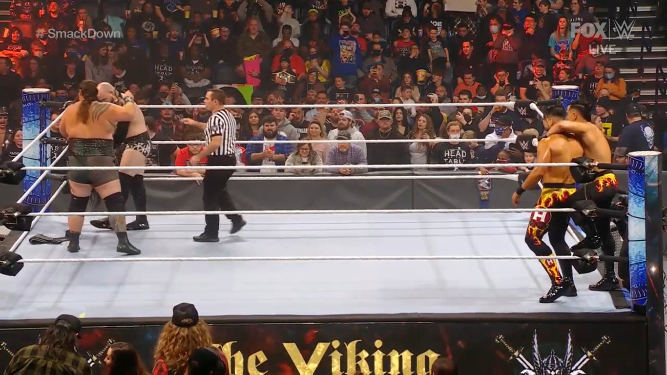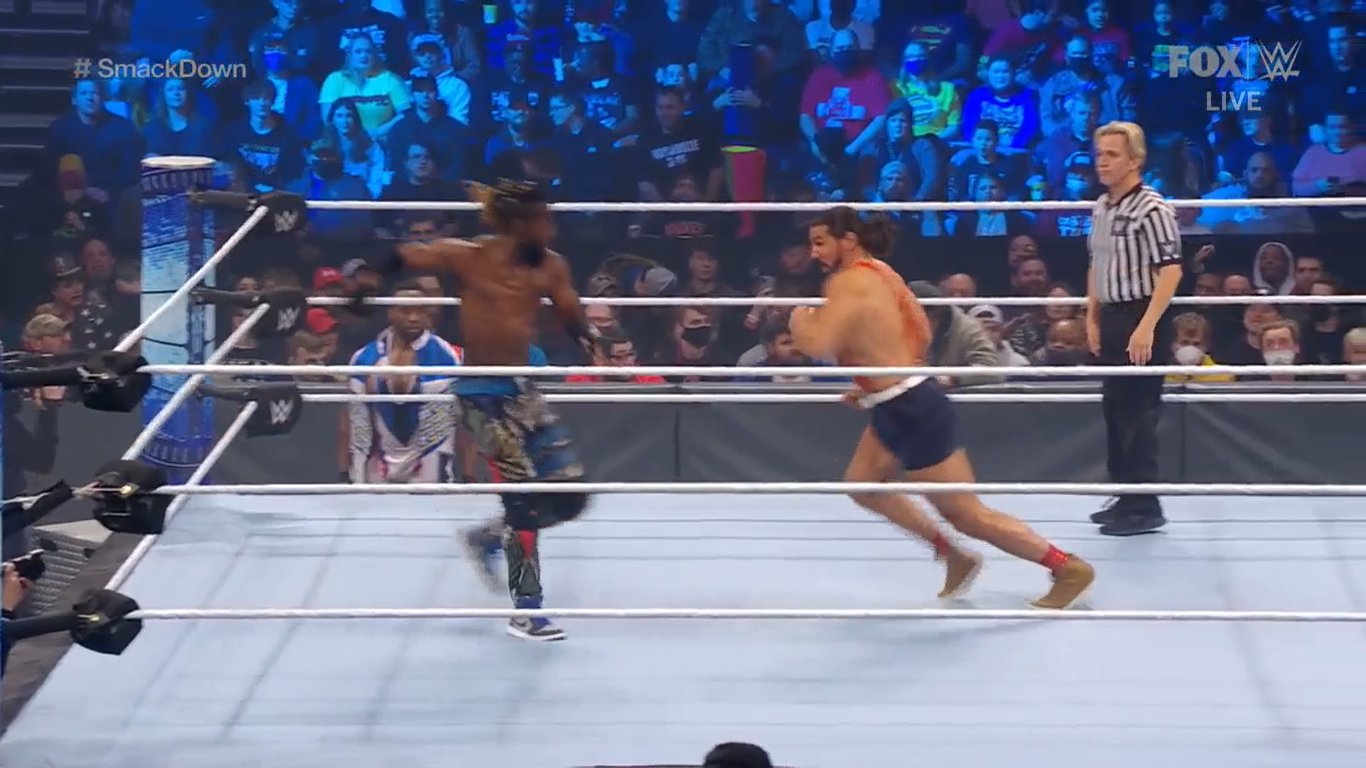 Corbin quiso ingresar para intimidar a Kofi, pero Big E hizo lo propio y se tuvo que retractar. Acto seguido, Big Ending para Moss.