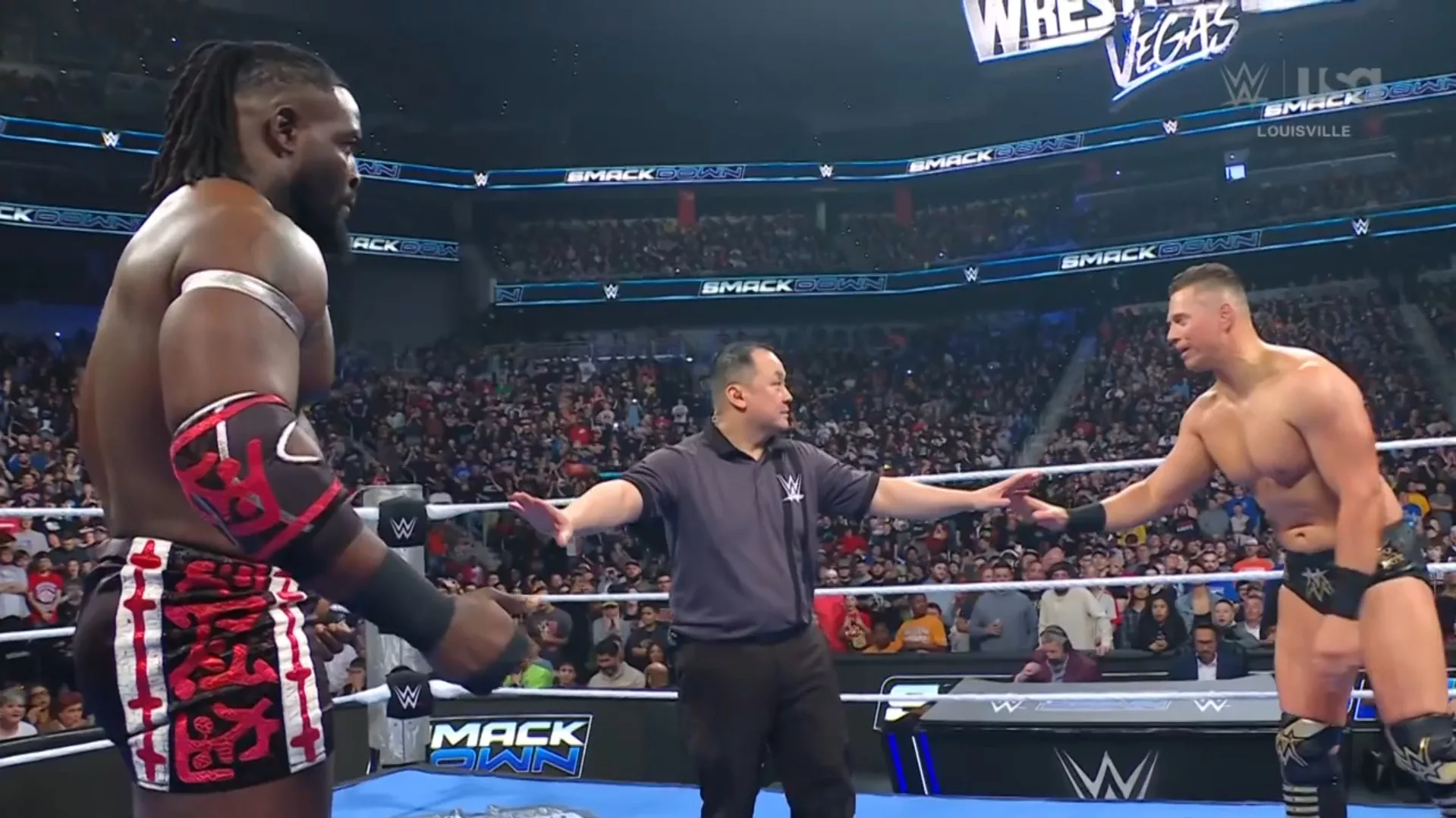 Oba Femi venció a Kit Wilson en sus dos primeras apariciones en SmackDown, esta es su tercera semana y se enfrentará a The Miz, quien le dijo que él le podía enseñar muchas cosas en WWE... Oba Femi aceptó, aunque The Miz no se refería a una lucha, sino como un aliado, pero, Oba Femi entendió una lucha y se hizo... La campana sonó y el Miz se salió para tomar micrófono y decirle que no tenían por qué luchar... Oba Femi le quitó el micrófono y Miz tomó otro... Miz dijo que todo era un error, un malentendido, cosas que le pasan como líder del vestidor... The Miz dijo que no quería ser un líder erróneo, sino ser como John Cena o The Undertaker, y por eso, le ofrecía a Oba Femi ser su Undertaker... Oba Femi le dijo: 'No te pareces a The Undertaker, pero, para mí, ¡luces como un hombre muerto!' Los fans se rieron, esto es bueno, la semana pasada con Kit Wilson también tuvo buena química en el micrófono en el ring, tiene carisma Oba Femi... The Miz le dijo a Oba que tenía muchas conexiones y podría hacer que todos los fans en el mundo corearan '¡Oba! ¡Oba! ¡Oba!' Oba dijo que no necesitaba al Miz para que los fans corearan su nombre... Oba le preguntó a los fans si debía unir fuerzas con The Miz y los fans dijeron que no... '¡Mike, vas a morir esta noche!', dijo Oba Femi... The Miz no se rindió y dijo que le iba a dar una lección: ser el mejor hombre, rendirse y marcharse... Femi lo tomó por el brazo; el Miz le dio un derechazo... Y Oba Femi casi le arranca el hombro con un lazo al cuello... Luego, Miz le dio un codazo y voló, pero recibió un puñetazo en el abdomen... Miz evitó un segundo golpe con la espalda en el esquinero... Oba Femi lo mandó a volar, y luego, lo subió a sus hombros para castigarlo con su tremenda versión del Razor's Edge, llamada Fall From Grace, que le dio la cuenta de tres.