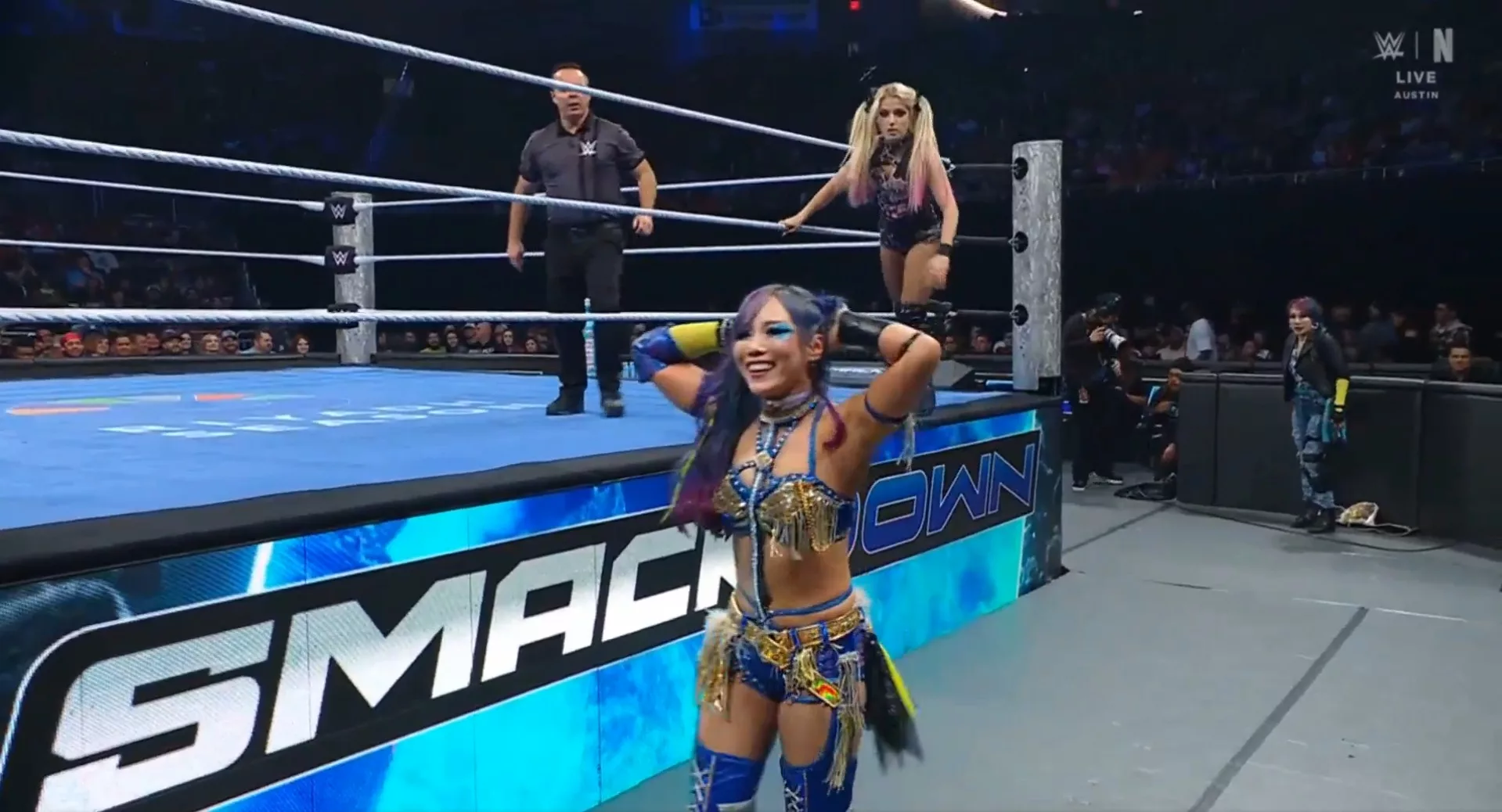 ► Tras la contienda, Lash Legend y NIa Jax atacaron a Alexa y Charlotte por la espalda con puñetazos y Zambullida Samoana para Flair. Sane se quedó congelada en el esquinero, sin saber qué hacer. Asuka atacó a Nia con un antebrazo giratorio y pateó a Lash. Nia luego le dio un cabezazo. Sane puso a Nia en una dormilona, pero con yegüita la mandó a volar. Asuka luego quitó a Sane a tiempo y evitó que fuera aplastada por el AnNIAlator.