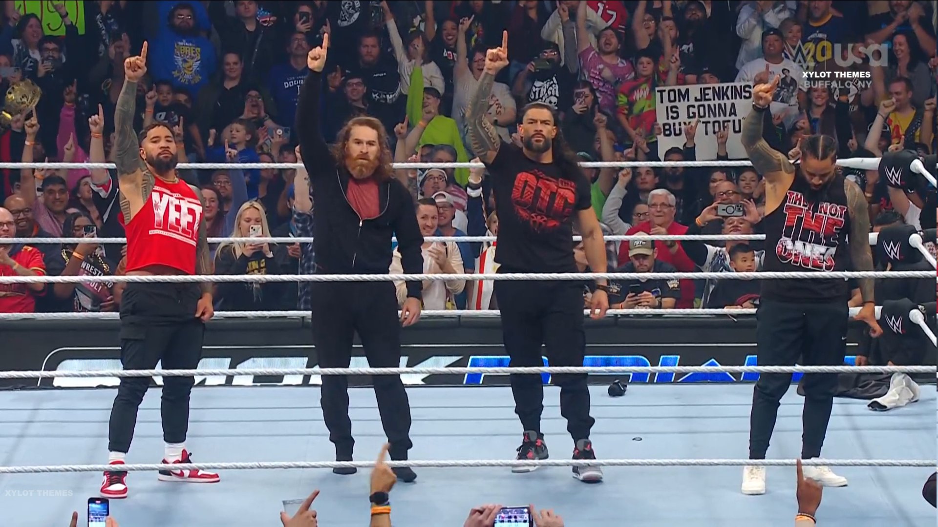 ► La función terminó con Reigns, Zayn y The Usos levantando el dedo índice como símbolo de The One, unificando una vez más a The Original Bloodline.