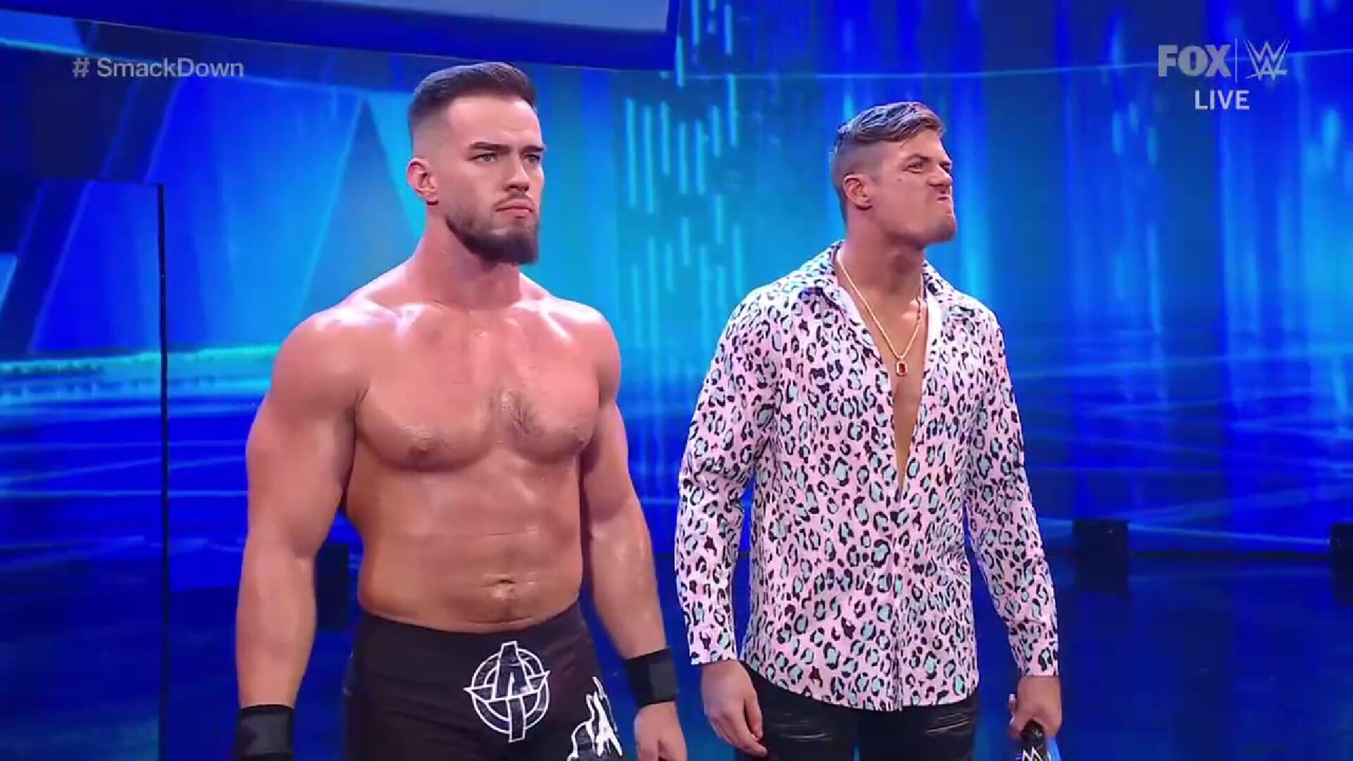 Grayson Waller llegó y presentó a Austin Theory y ambos se vendieron como el mejor equipo de todos los tiempos, al haber ganado solo un combate la semana pasada. Theory recordó todo lo que ya ha conseguido en la WWE, incluyendo una victoria sobre él, burlándose de su estatus de «megaestrella».