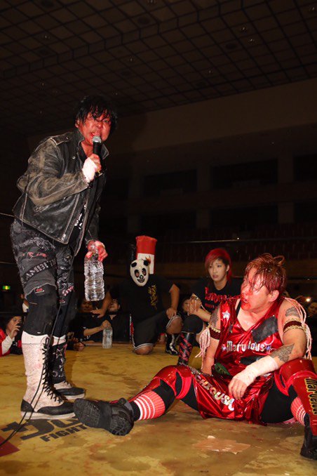 最初の被弾は大仁田厚 バットだけでこの爆破力。間近だったので爆破音がハンパねぇ。しばらく右耳が耳鳴りしていた。#マーベラス #zero1 pic.twitter.com/cuRlkoxAH6